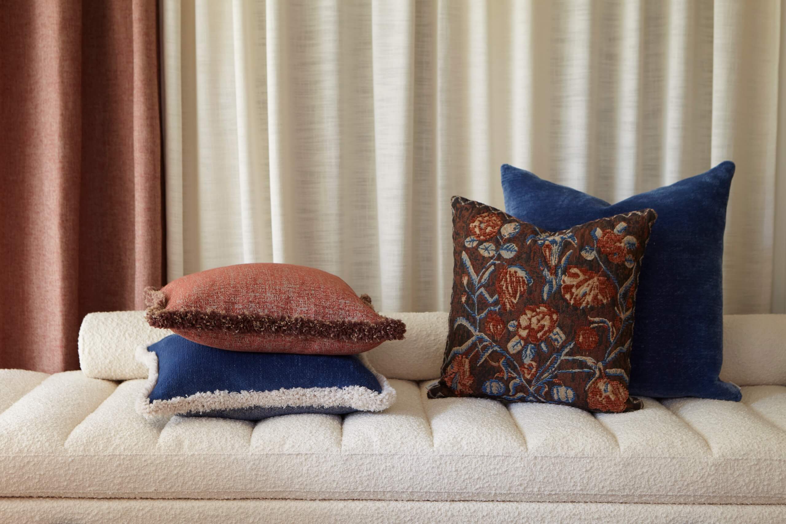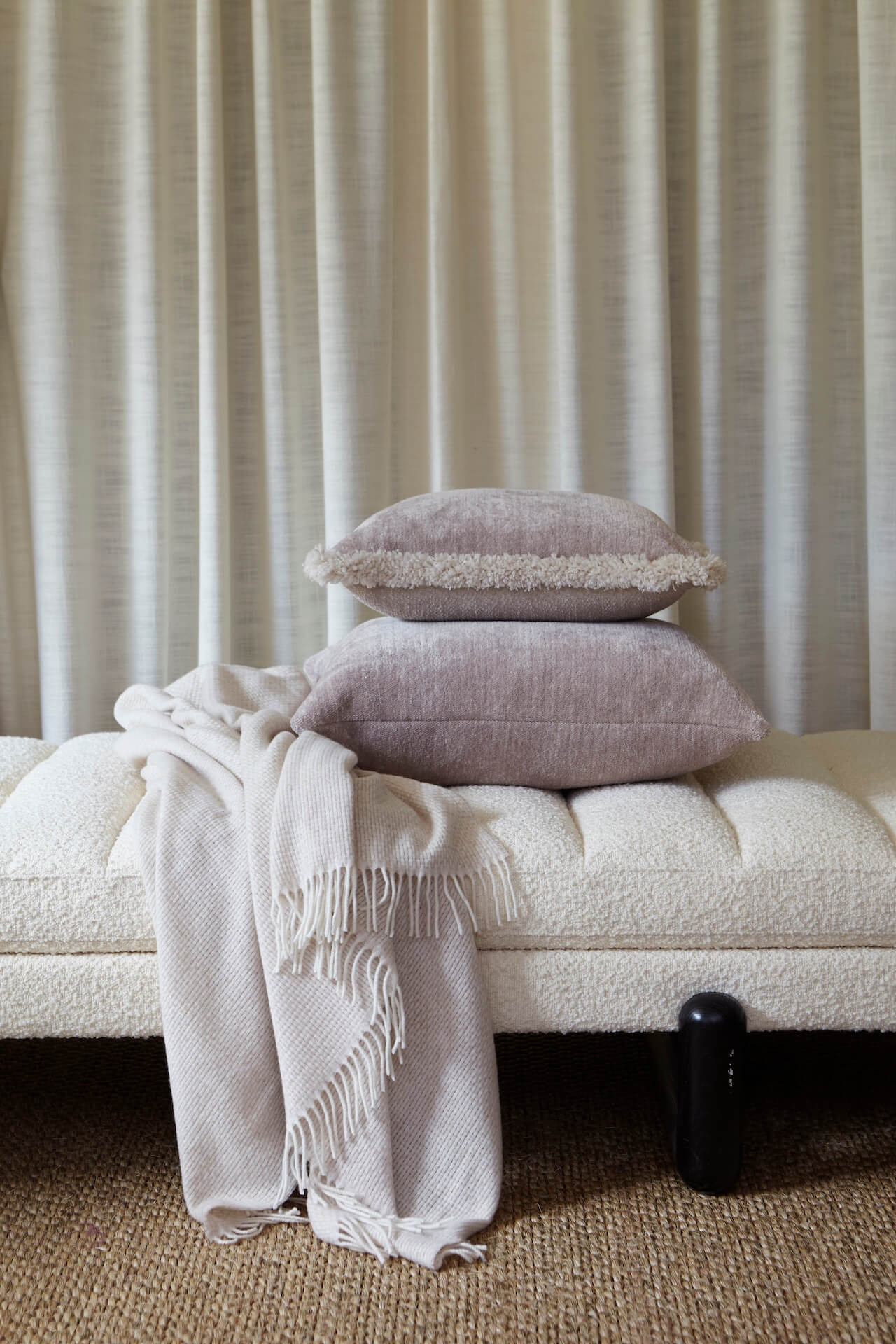 The collection features richly textured cushions in chenille, gobelin, and recycled wool — some finished with a fringe that pays homage to the past while feeling perfectly modern. Wool throws and scarves reinterpret traditional åkle patterns with floral touches. We have also included full-length cardigans and throws – crafted in soft, Oeko-Tex certified boiled wool from Tuscany. The color palette is rich and refined for contemporary living.